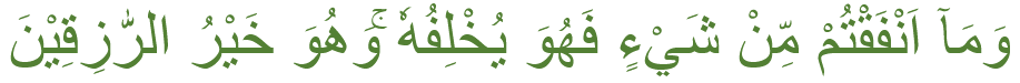 Dan barang apa saja yang kamu nafkahkan, maka Allah akan menggantinya dan Dialah pemberi rezeki yang sebaik-baiknya. (Qs: AsSaba 39)